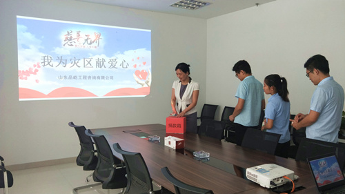 “一方有难,八方支援”, 8月31日上午,品屹公司在会议室举行了“我为灾区献爱心”捐助活动,全体员工积极响应、踊跃参与。9月1日,员工代表赶往寿光,将承载着深情与祝愿的善款捐给了寿光市慈善总会,用于寿光水灾专项救助。希望灾区人民能够早日渡过难关、重建家园。